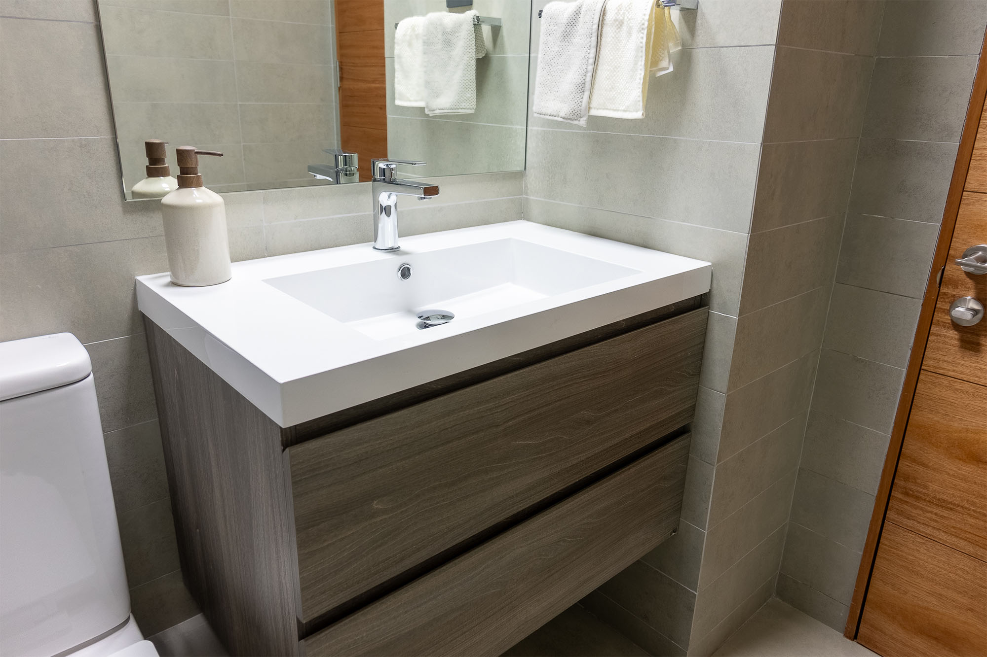Una vez que se completa el trabajo de construcción principal, se agregan los toques finales. Esto incluye pintar, instalar espejos, gabinetes, accesorios y cualquier otro elemento decorativo.